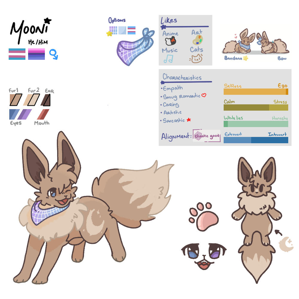 Eevee and Pikachu have always resigned with me since I was a young kid, and I took on eevee as my character's base back in 2018. Since then my eevee has turned into its own, into mooni you see now.Also do I need to even say more?